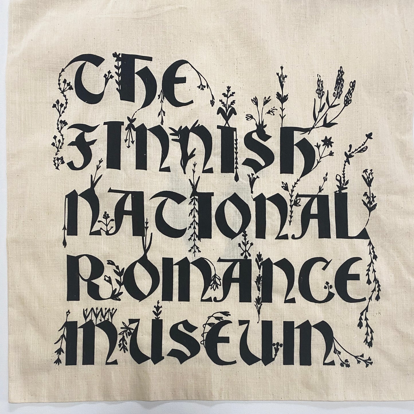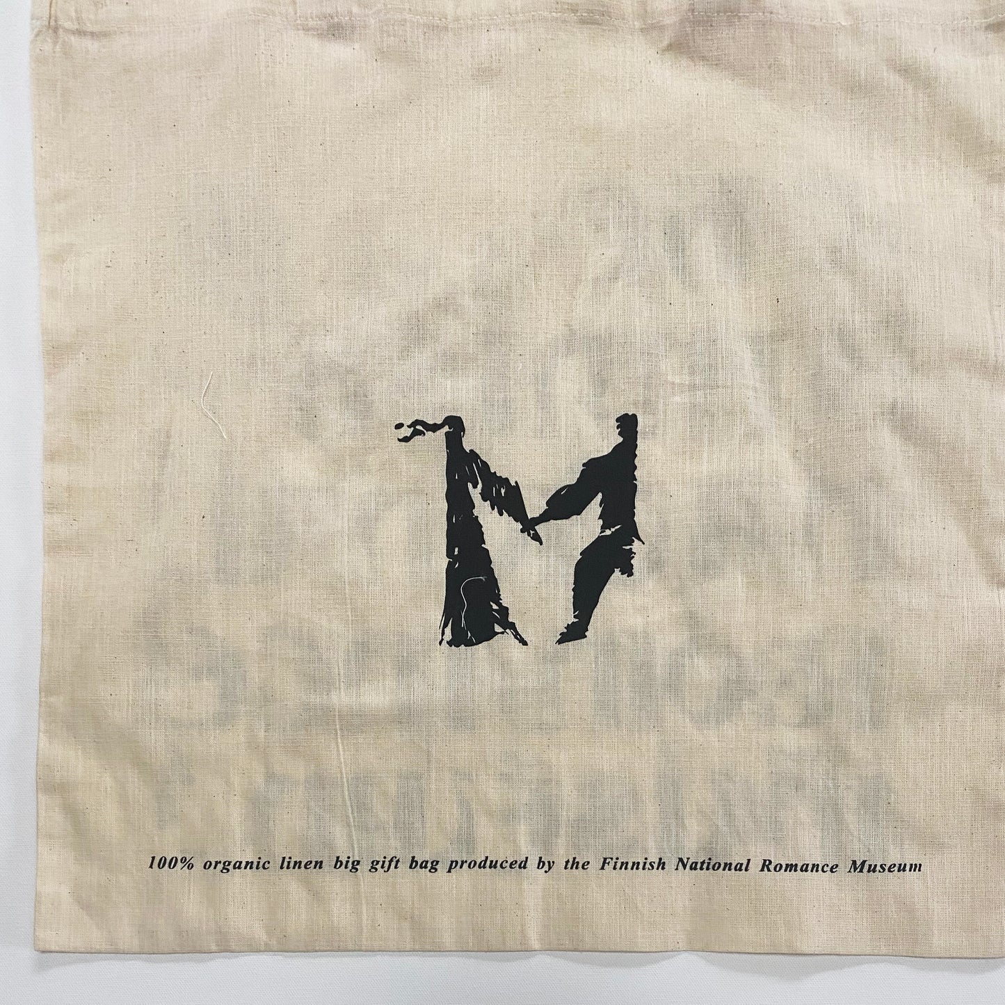Big gift bag produced by the Finnish National Romance Museum. Logo hand-printed using a 50 x 50cm screen.
